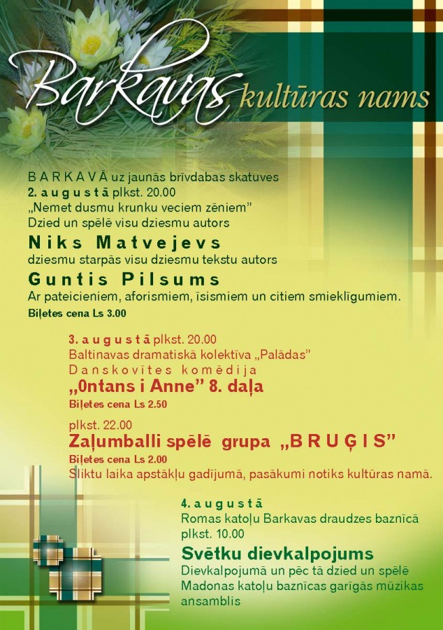 Sliktu laika apstākļu gadījumā , pasākumi notiks kultūras namā.