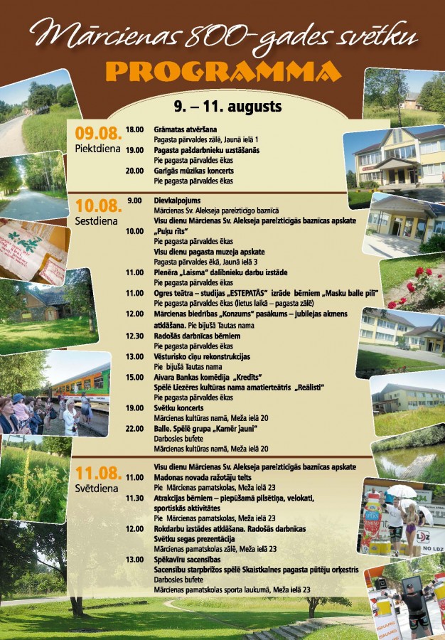 10.augustā pie pagasta administratīvās ēkas Jaunā ielā 1 un 11. augustā pie kultūras nama Meža ielā 20