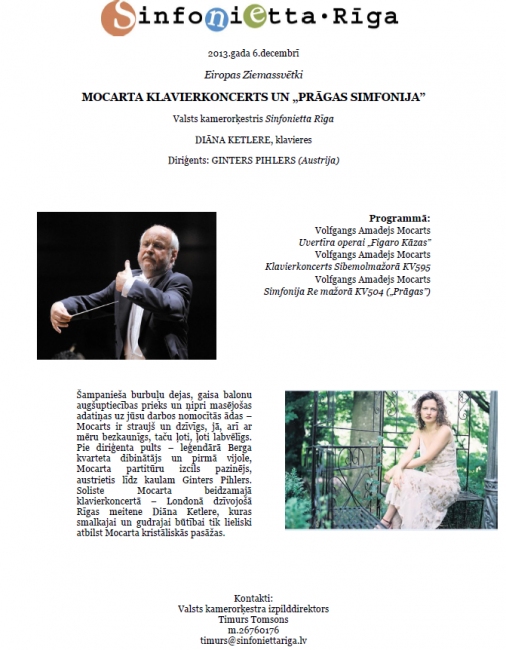 Kontakti: Valsts kamerorķestra izpilddirektors Timurs Tomsons m.26760176 timurs@sinfoniettariga.lv |