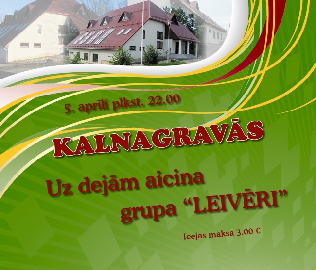 Kalnagravās notiks dejas kopā ar grupu "Lēveri". 5. aprīlis plkst 22:00 Ieejas maksa- 3 eiro