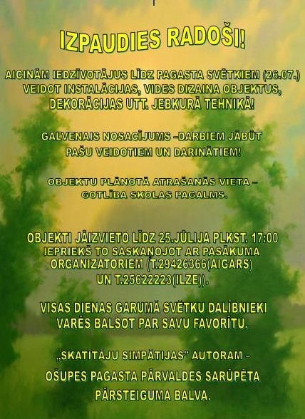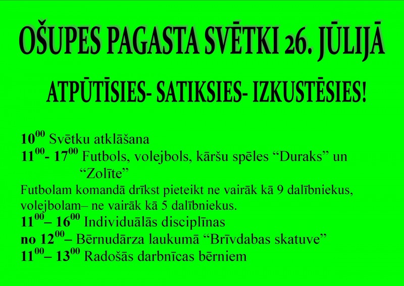 Informāciju iesūtīja: Ošupes pagasta kultūras darba organizatore Ilze Melngaile.