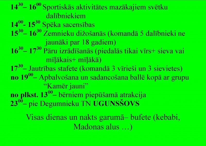 11.00 - 17.00 Futbols, volejbols, kāršu spēles „Duraks” un „Zolīte”.