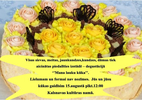 "Lauku kūka" - pagasta saimniece, kūku cepējas aicinātas piedalīties kūku izstādē - degustācijā!