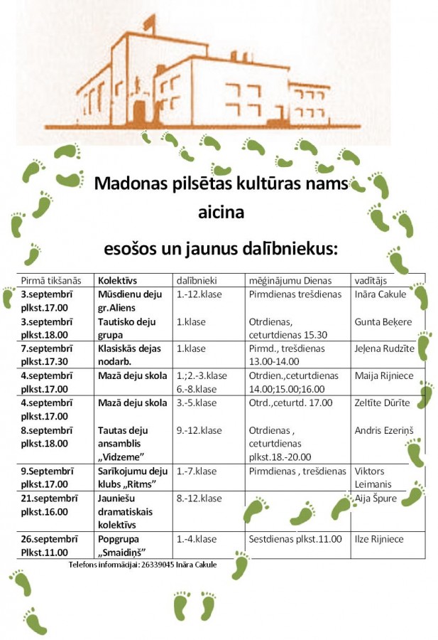 Informāciju iesūtīja: Madonas pilsētas kultūras nama mākslinieciskās daļas vadītāja Ināra Cakule. Mob.tālr.: 00 371 26339045.