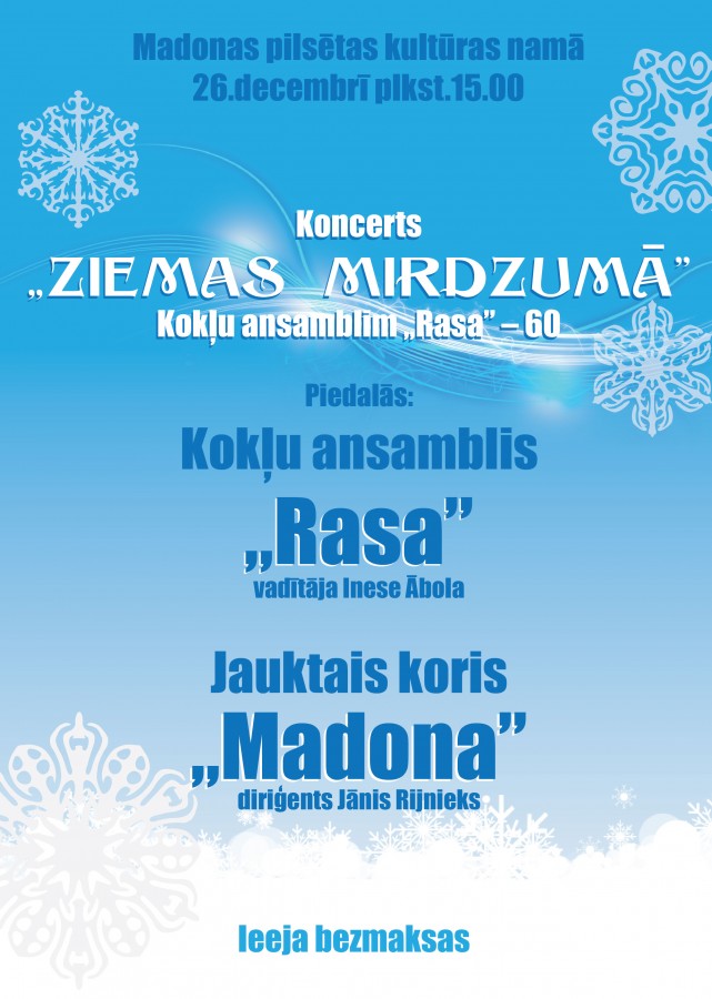 Madonas pilsētas kultūras namā 26.decembrī pulksten 15.
