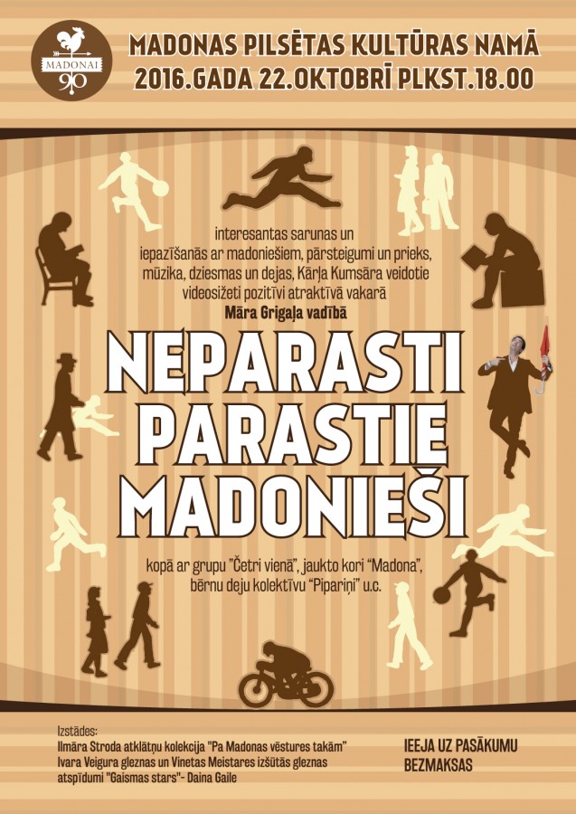 Madonas pilsētas kultūras namā 22.oktobrī pulksten 18:00.Ieeja pasākumā bez maksas.