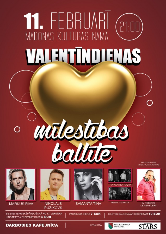 Madonas pilsētas kultūras namā 11.februārī pulksten 21:00.Biļešu iepriekšpārdošana: "Biļešu paradīzes" un kinoteātra "Vidzeme" kasēs, kā arī