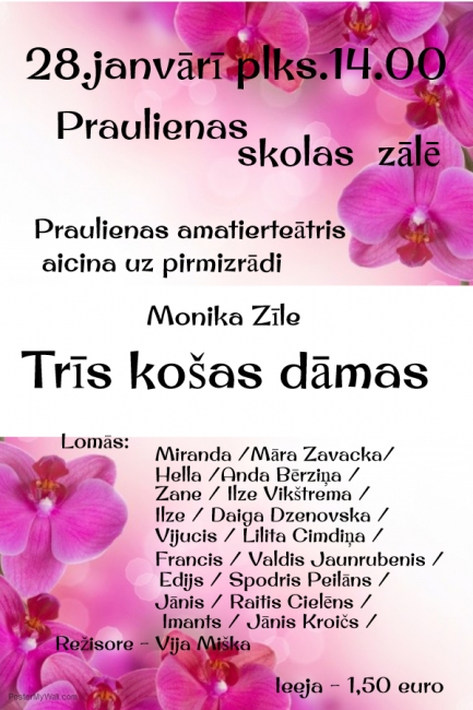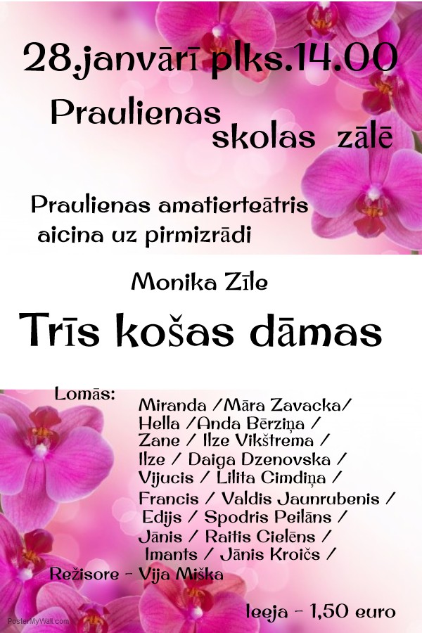 Praulienas pamatskolas zālē 28.janvārī pulksten 14:00.Ieejas maksa: 1.50 EUR.
