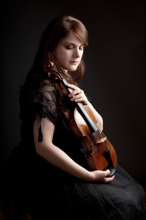 Olīvija Steindlere spēlē uz Jacob Stainer skolas vijoles (1682) un Vācijā izgatavotu klasisko lociņu (ap 1820)...