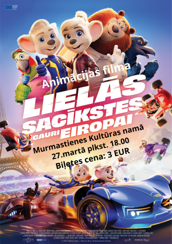 Animācijas filma visai ģimenei “Lielās sacīkstes cauri Eiropai” Murmastienē 27. marts 18:00 - 19:30 Filmas "Lielās sacīkstes cauri Eiropai" kinoseanss Murmastienes kultūras centrā - 27. martā plkst. 18.00. iesūtīts: 25.02.2026lasīt tālāk