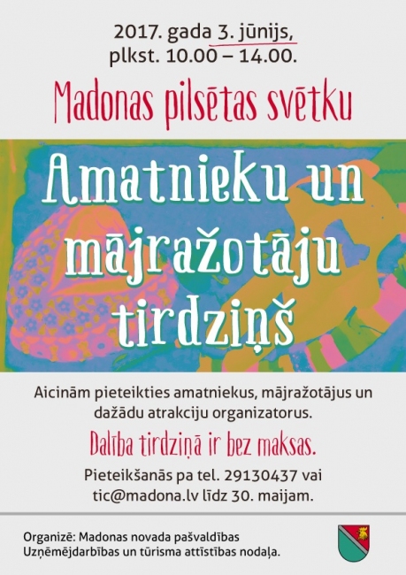 Kā pieteikties? Pie Sanitas Somas pa tālr.: 29130437 vai tic@madona.lv līdz 30.maijam.