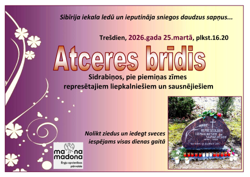 19. februāris 06:00 - 18. marts 12:00 Aicinām Madonas novada seniorus uz ikmēneša tikšanos, šajā reizē tikšanās ar Valsts ugunsdzēsības un glābšanas dienesta pārstāvjiem.iesūtīts: 12.03.2026lasīt tālāk
