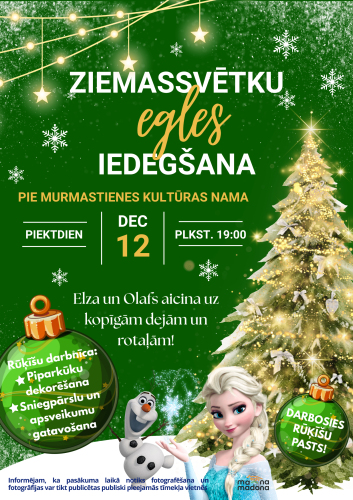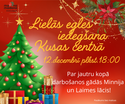 12. decembris 18:00 - 19:00 Ārā līst, ka plīkšķ vien - bet tas mūs nebaida, jo Ziemassvētki NĀK! Un jau sestdien sola mīnusiņus! Lai vai kāds laiks ir ārā, Ziemassvētki iededz svētku sajūtu mūsu sirdīs, un izrotāta svētku eglīte liek mūsu sirdīm atkal gaidīt brīnumu.