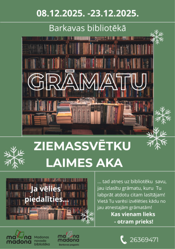 17. decembris 15:00 - 16:30 Barkavas pagasta bibliotēka savus lasītājus aicina uz Ziemassvētku noskaņu pasākumu 17. decembrī plkst. 15.00.