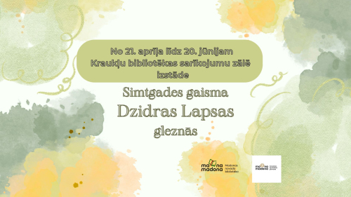 3. februāris 10:00 - 30. aprīlis 17:00“Barkava manās atmiņās” 23. februāris 10:00 - 15. aprīlis 17:00Hobijs, kas veicina smaidīšanu5. marts 09:00 - 5. maijs 17:00 "No idejas līdz kustībai. Sporta biedrību ceļš” 10. marts 18:00 - 7. maijs 17:00"Leo simts ežu saiets” Kraukļos14. marts 13:00 - 10. maijs 16:00Olitas Šleseres izstāde "Kvadrātā"14. marts 13:00 - 10. maijs 16:00Gunta Brakovska. “Gleznieciskie monologi”17. marts 10:00 - 18. aprīlis 14:00Aicinājums veidot kopīgu izstādi “Braucamrīki laiku lokos” 24. marts 16:00 - 24. aprīlis 18:00Izstāde “Parīzes Dievmātes katedrāles atdzimšana. Citi rakursi” 25. marts 10:00 - 29. maijs 18:00Lubānietes Lilijas Aumeles gleznu izstāde “Stāsti bez vārdiem…”25. marts 10:00 - 14. jūnijs 16:00“Un spožo sliežu ceļš – tāls un nezināms” 8. aprīlis 09:00 - 2. jūlijs 17:00Lauku muzikanti Madonas novadā 20. gadsimtā8. aprīlis 10:00 - 15. maijs 18:00 Mākslinieces un grāmatu ilustratores Agijas Stakas izstāde “Putni” 8. aprīlis 13:00 - 8. maijs 18:00Ceļojošā izstāde “Brunsvikai 250” 9. aprīlis 09:00 - 15. maijs 17:00Anitas Kaminskas pērlīšu gleznu izstāde 14. aprīlis 10:00 - 14. jūnijs 17:00Māras Dumbres gleznu izstāde “Manu noskaņu pasaule” 15. aprīlis 09:00 - 31. maijs 17:00Sandras Valaines austo spilvenu izstāde "Diegu ritms krāsu skaņās" 15. aprīlis 10:00 - 15. maijs 15:00Sandras Kokas foto izstāde "Grāmatu ceļa kartes" 15. aprīlis 17:00 - 18:30Spēlfilma “Nospiedumi” Degumniekos