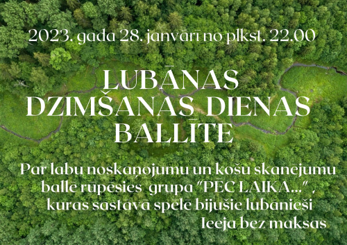 28. janvāris 22:00 - 29. janvāris 03:00Šā gada 28. janvārī Lubānas pilsēta svin savu 31. dzimšanas dienu! 28. janvārī plkst. 22.00 Lubānas pilsētas klubā visi laipni aicināti uz svētku ballīti. Par labu noskaņojumu un košu skanējumu ballē rūpēsies grupa "Pēc laika...", kuras sastāvā