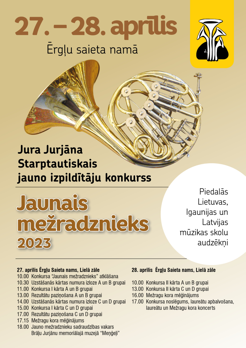Ērgļos mežraga spēles tradīcijas ir saglabātas līdz mūsdienām un 2023. gadā šis konkurss notiks jau 24. reizi. Uz konkursu “JAUNAIS MEŽRADZNIEKS “ierodas labākie mežragu spēles audzēkņi no Latvijas, Lietuvas un Igaunijas mūzikas skolām.