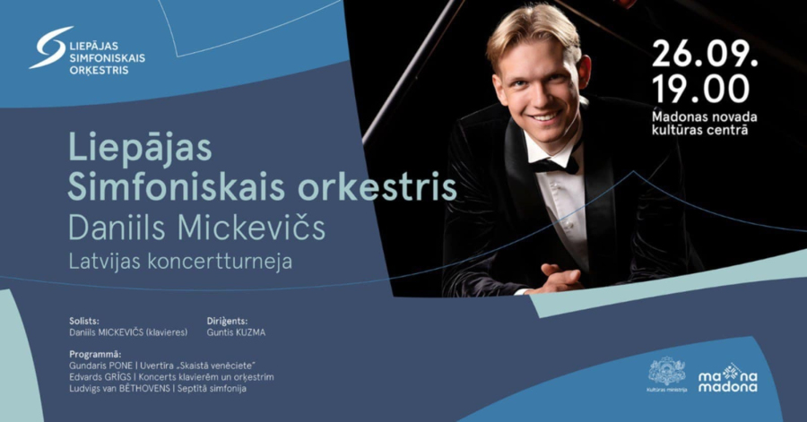 Septembra izskaņā Liepājas Simfoniskais orķestris tā galvenā diriģenta Gunta Kuzmas vadībā dosies rudens koncertturnejā pa Latviju, uzstājoties arī Madonas novada kultūras centrā 26. septembrī plkst. 19.00. Koncertprogrammas īpašā viesa lomā – pianists Daniils Mickevičs.