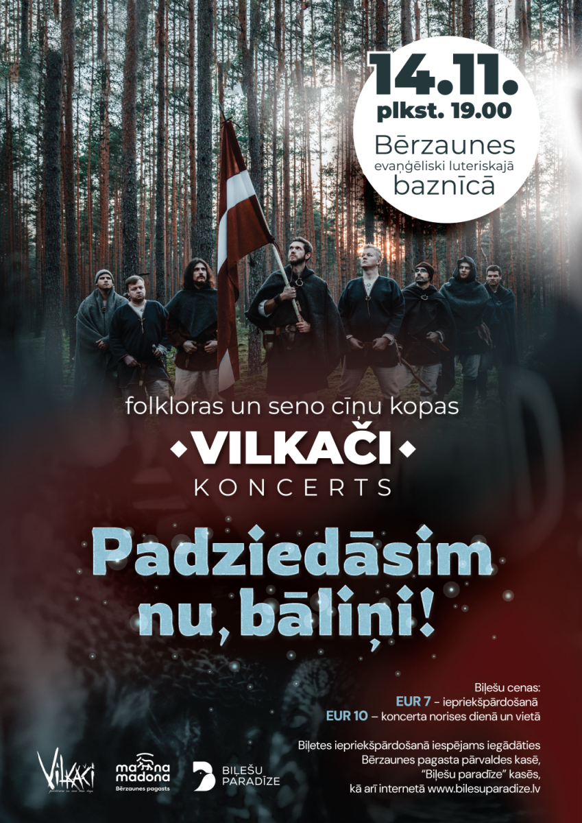 Valsts svētku mēnesī uz skanīgu un patriotisku koncertu aicina folkloras un seno cīņu kopa “Vilkači” – dziesmai izskanot caur senā karavīra prizmu, kurš ir kā uzskatāms paraugs tautas gara spēkam, mīlestībai pret dzimteni, alkām pēc brīvības un vēlmi pašam būt saimniekam savā zemē!
