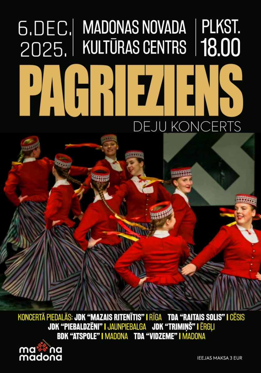 Ieejas maksa - 3 EUR, iegādājam stundu pirms koncerta Madonas novada kultūras centrā.