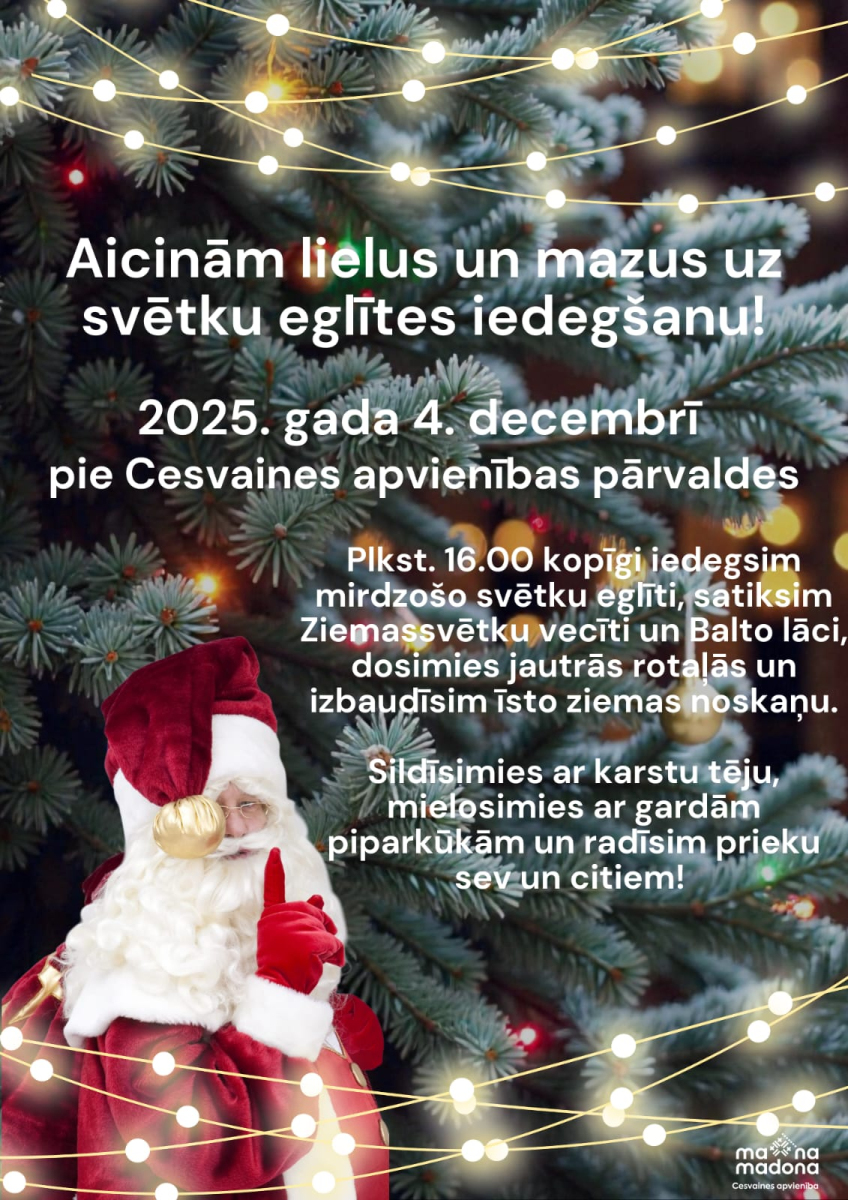 Aicinām lielus un mazus uz sirsnīgu un priecīgu svētku eglītes iedegšanas pasākumu pie Cesvaines apvienības pārvaldes!