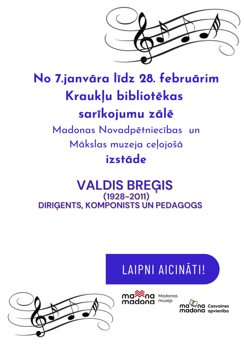 Diriģenta devums vairāk nekā 10 koru un ansambļu, kā arī vairāku, tai skaitā Madonas, rajonu kopkoru vadīšanā. Izstāde sniedz ieskatu Valda Breģa radošajā darbībā - mūzikas sacerēšanā un informē par pedagoģijai veltīto mūža daļu.