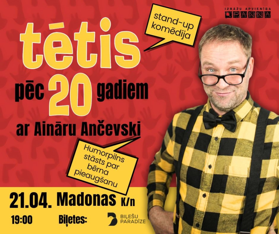 Aktieris Ainārs Ančevskis ir izaudzis kopā ar izrādes varoni un tagad var izdzīvot visu plašo dēla - divdesmitgadnieka audzināšanas spektru jaunajā izrādē - komēdijā "Tētis pēc 20 gadiem".