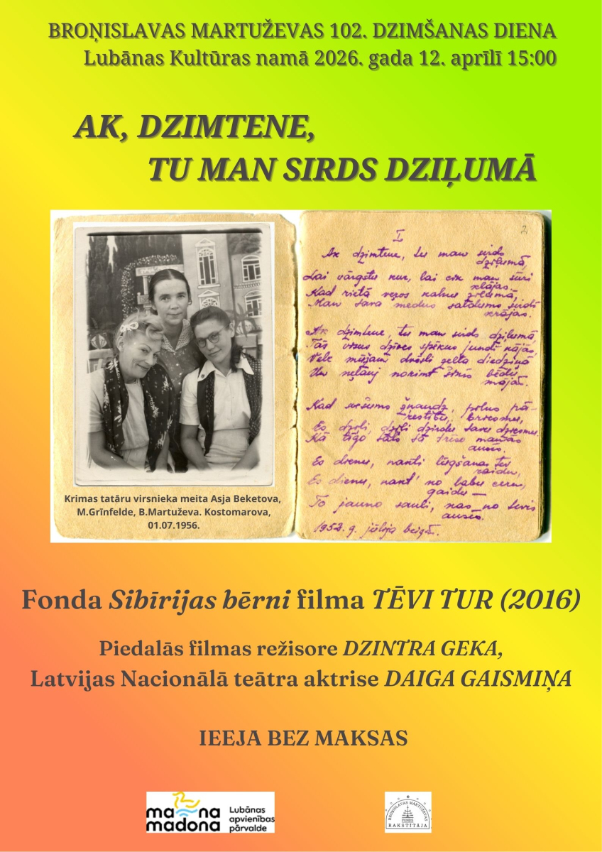 Pasākumu atbalsta Madonas novada pašvaldība, organizē Broņislavas Martuževas fonds RAKSTĪTĀJA sadarbībā ar Lubānas apvienības pārvaldi.
