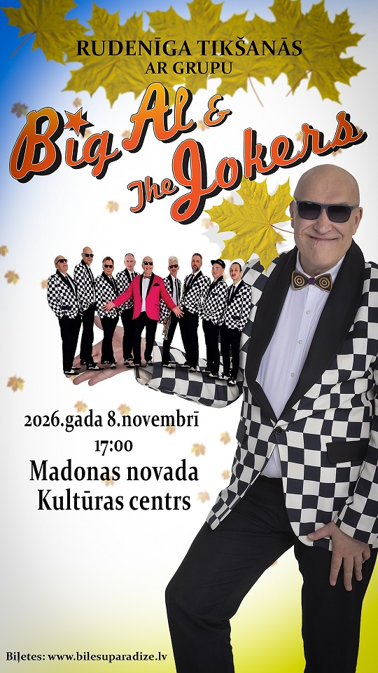 Koncerts "Rudenīga tikšanās ar grupu "Big Al & The Jokers" notiks Madonas novada kultūras centrā 8. novembrī plks. 17:00.