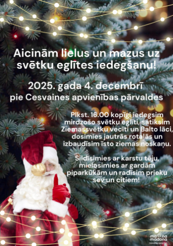 4. decembris 16:00 - 17:00; pie Cesvaines apvienības pārvaldes; CesvaineAicinām lielus un mazus uz sirsnīgu un priecīgu svētku eglītes iedegšanas pasākumu pie Cesvaines apvienības pārvaldes!