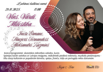29. novembris 17:00 - 18:30; Lubānas kultūras nams; Lubāna2025. gada 29. novembrī plkst. 17.00 Lubānas kultūras namā Inese Ērmane, Havjers Fernandess, Aleksandrs Kuzmins koncertprogrammā - skaistākajās mīlestības valodās, kurā Spānijas kaisle satiekas ar Latvijas maigumu. Mākslinieki kopā ar ģitāristu Aleksandru Kuzminu piedāvā reibinošu, muzikālu piedzīvojumu - tiltu starp kultūrām ar populārām latviešu, spāņu, franču, itāļu un portugāļu mīlas dziesmām.