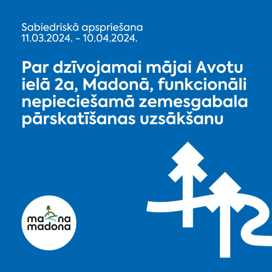 Madonas novada pašvaldība informē, ka iesaistītajām pusēm ir tiesības 30 dienu laikā no projekta priekšlikuma publicēšanas Madonas novada pašvaldības tīmekļvietnē www.madona.lv, sniegt savu viedokli un argumentus par piedāvāto projekta priekšlikumu.
