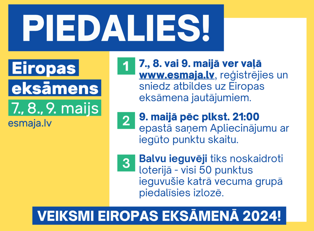 1. Eiropas eksāmens notiek 7., 8. un 9. maijā, tiešsaistē www.esmaja.lv.