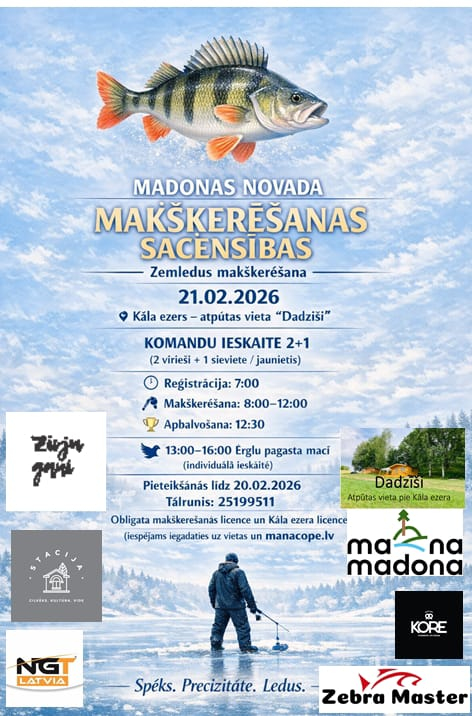 2026.gada 21.februārī, uz Kāla ezera norisināsies Madonas novada atklātais čempionāts zemledus makšķerēšanā.