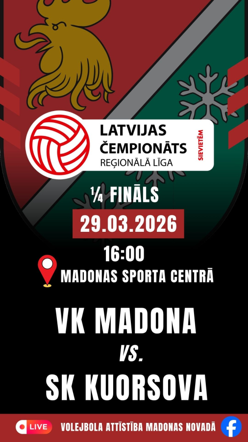 Nāksim un atbalstīsim mūsu sieviešu volejbola komandu "Madona" jau 29.martā plkst.16:00, Madonas pilsētas sporta centrā.