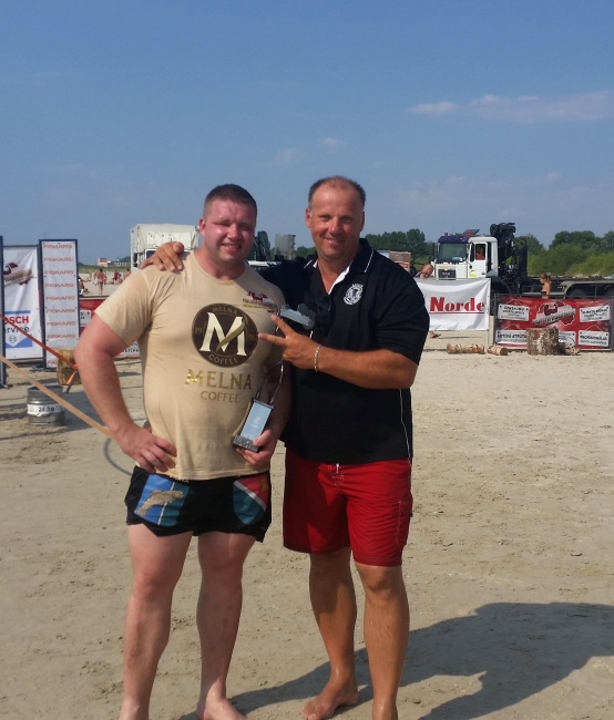 Pēc pirmajiem trīs vingrinājumiem kopvērtējuma tabulā starpība starp Didzi un Oskaru 3,5 punkti. Ceturtais vingrinājums - mucu mešana, 4,2 m augstumā. Tas ir Oskara Martužana mīļākais vingrinājums, bet Didzim tas ne visai padodas. Tā mucu mešanā Oskars pirmais, Didzis ceturtais. Pirms pēdējā vingrinājuma „Rekordrallijs.lv” - mucu nešana no ūdens, punktu starpība bija sarukusi līdz minimumam. Didzis Oskaru apsteidz tikai par 0,5 punktiem un tas nozīmē, ka lai kļūtu par šī gada čempionu, pēdējā vingrinājumā ir noteikti vajadzīga uzvara. Tomēr uzvaru stafetē guva Oskars Martužans un tātad kopvērtējumā ar izcīnītiem 79,5 punktiem ieguva 2014.g. čempiona titulu. Didzim 78 punkti un vicečempiona tituls. Kā trešais ar 72,5 puktiem čempionātu beidza Aivars Šmaukstelis. Šie spēkavīri saņēma arī skaistus metālkalēja izgatavotus kausus no titulētā spēkavīra Raimonda Bergmaņa rokas.