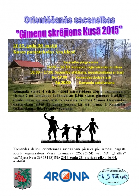 Komandas dalību orientēšanas sacensībām piesaka pie Aronas pagasta sporta organizatora Venta Ikaunieka (26325924) vai MC „1.stāvs” vadītājas (Iveta 26363415) līdz 2014. gada 28. maijam plkst. 16:00.