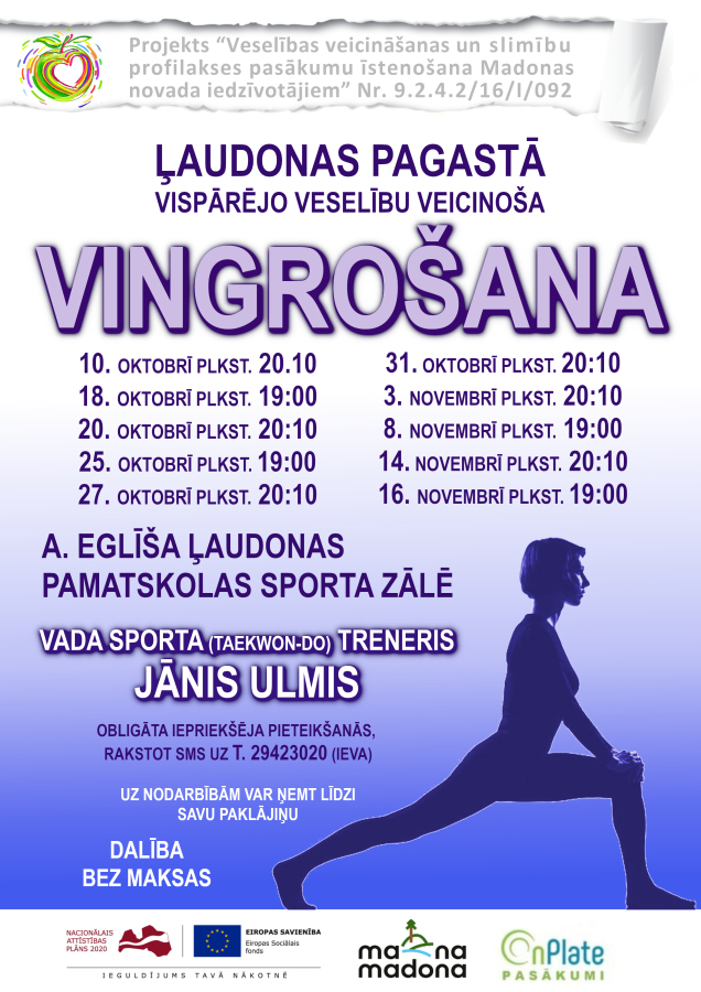 Vingrošana ir viens no efektīvākajiem mūža pagarināšanas līdzekļiem. Labs organisma darbaspēju un veselības uzlabošanas un aktīvās atpūtas līdzeklis Aicinām uz veselību veicinošas vingrošanas nodarbībām Ļaudonas pagastā