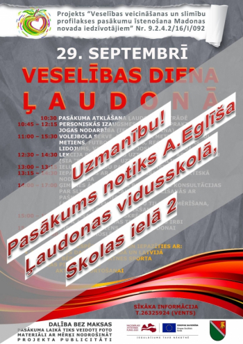 Projekta “Veselības veicināšanas un slimību profilakses pasākumu īstenošana Madonas novada iedzīvotājiem” Nr. 9.2.4.2/16/I/092 ietvaros dažādās ar veselību saistītās aktivitātēs piedalīsies Ļaudonas pagasta izglītības iestāžu skolēni.